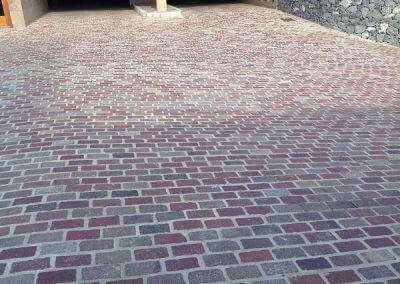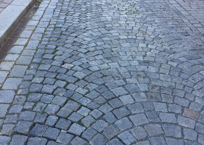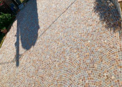 Gli acciottolati sono delle pavimentazioni realizzate in genere con sassi di fiume o alluvionali e non hanno una geometria ben definita. Grazie alla tecnologia di spacco prodotta da Steinex srl i ciottoli possono essere tranciati a metà ottenendo così degli elementi con una superficie tranciata che è più agevole al calpestio.